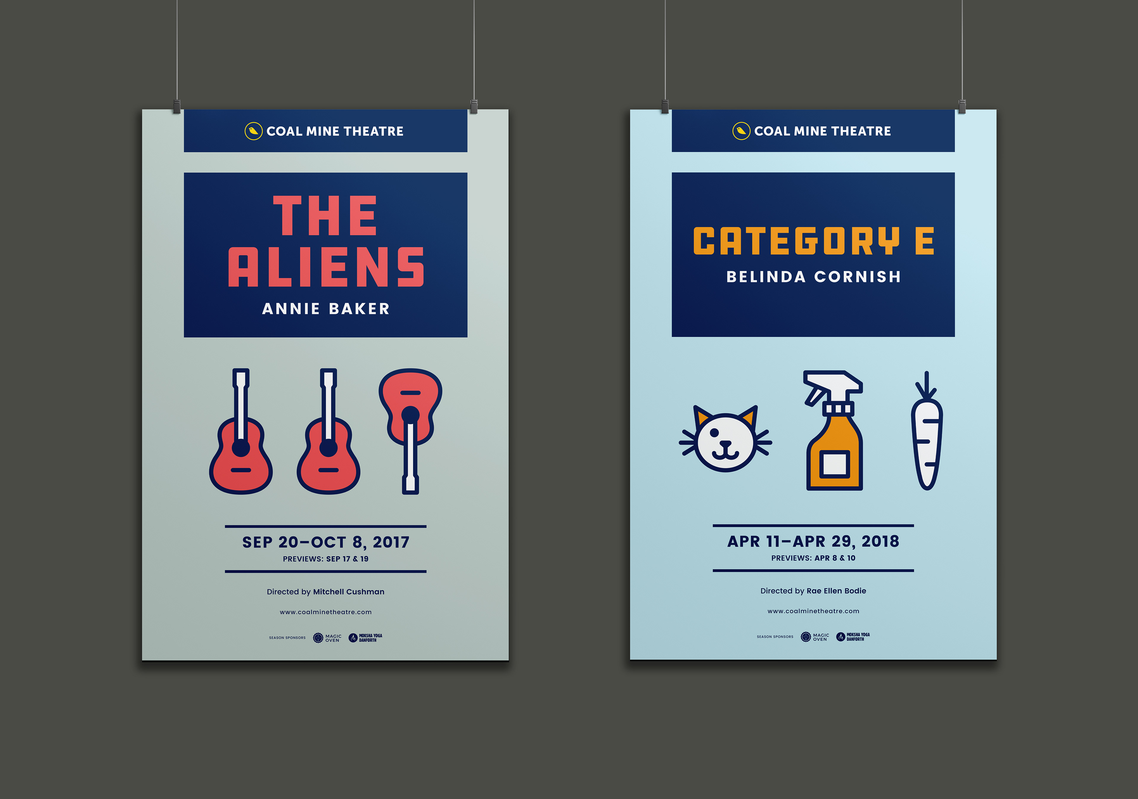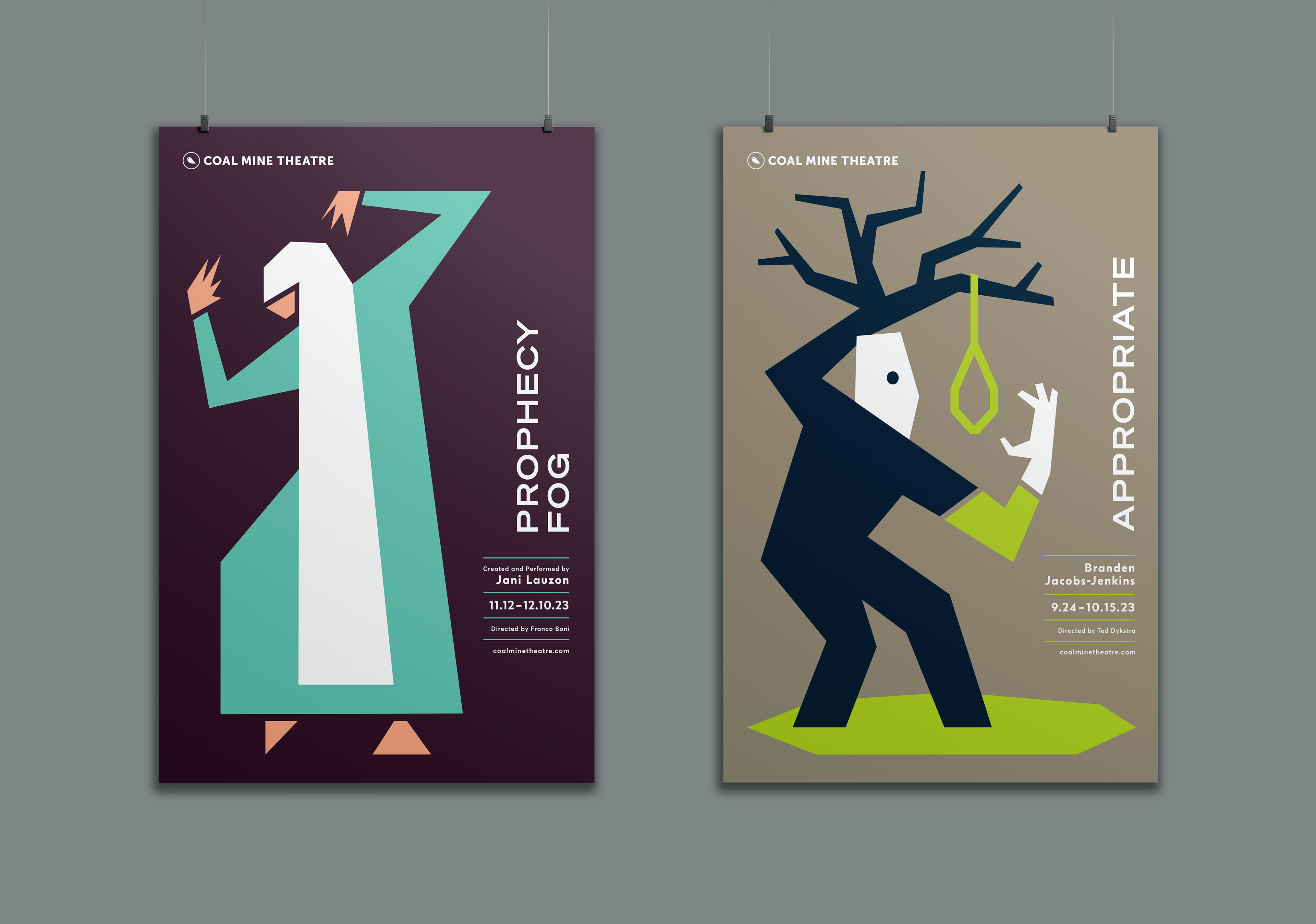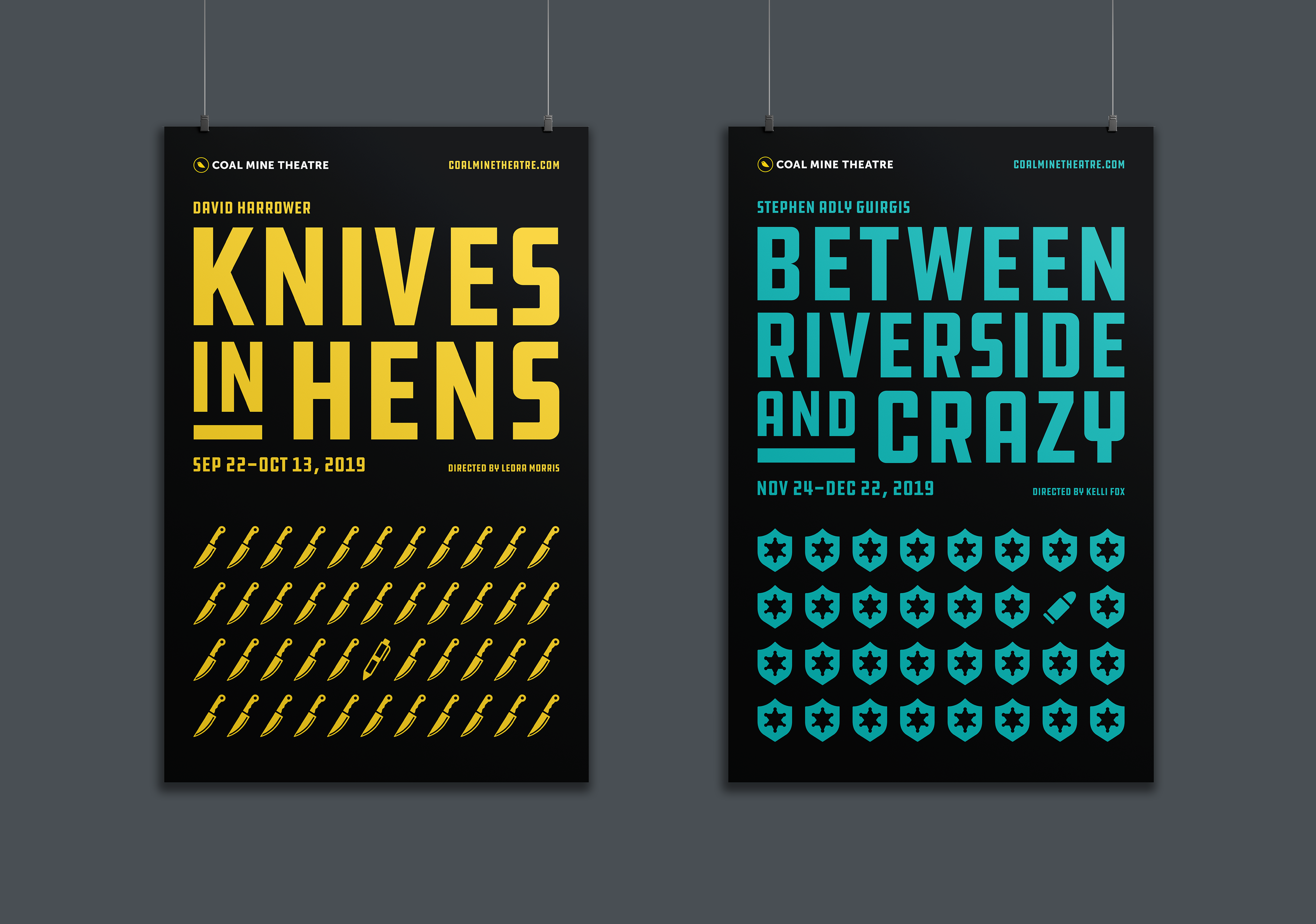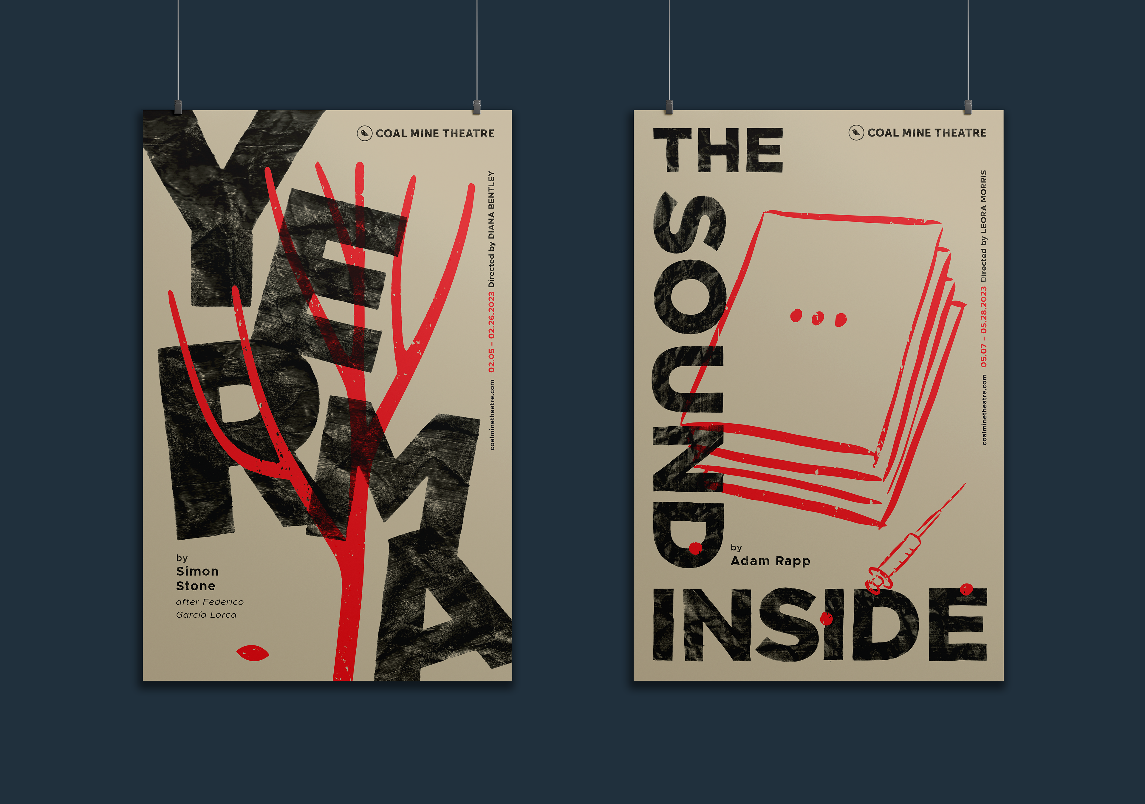 The Coal Mine is an independent theatre in Toronto’s East End. The logo concept is based on an allusion to caged canaries that miners would carry down into the mine tunnels with them. If dangerous gases such as carbon monoxide collected in the mine, the gasses would kill the canary before killing the miners, thus providing a warning to exit the tunnels immediately. Just like a new play the success of which is never certain. Each season's design strives towards a different feeling (dramatic, happy, intense). The illustrations are based on elements of the plays, but never spoiling the story.