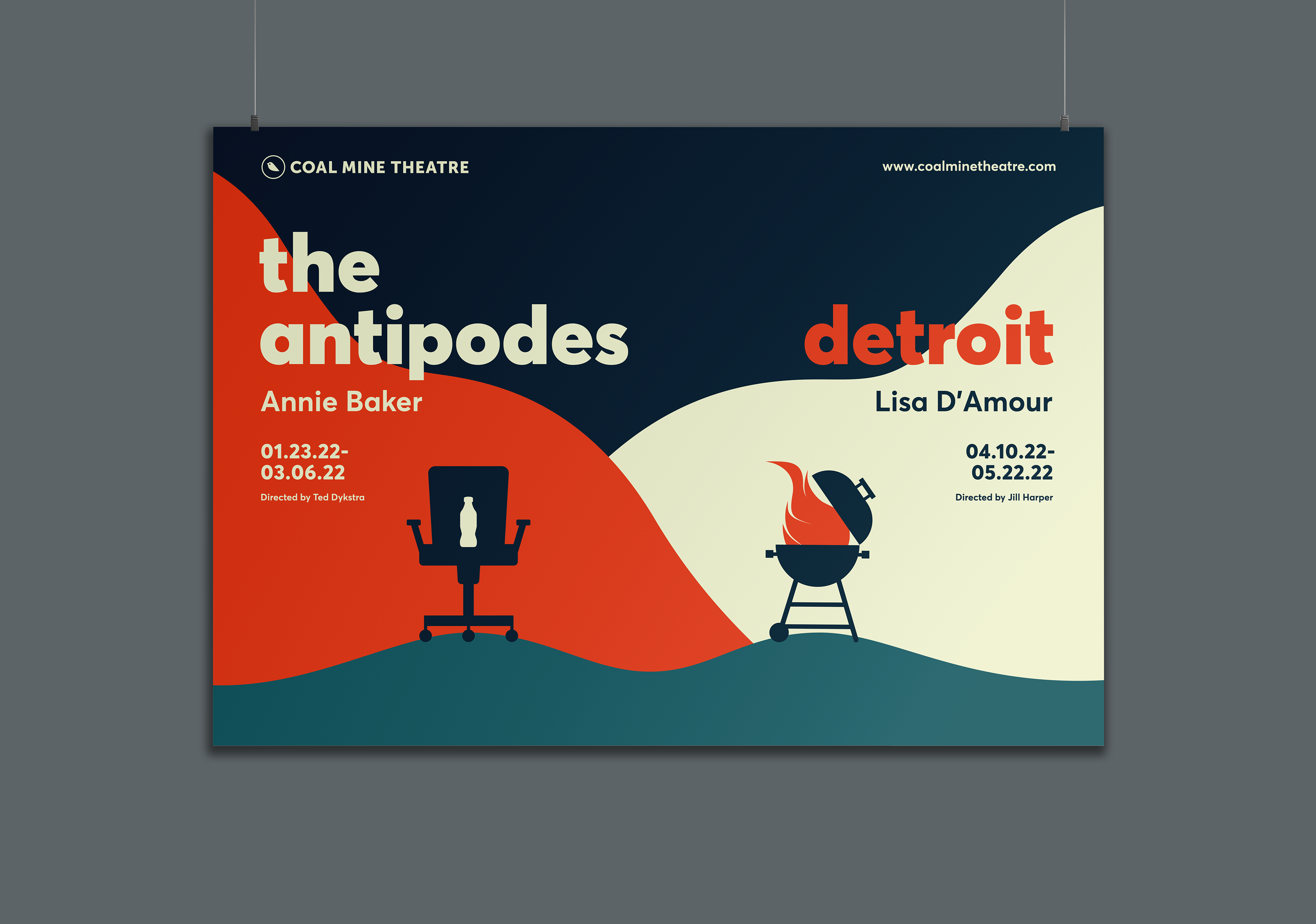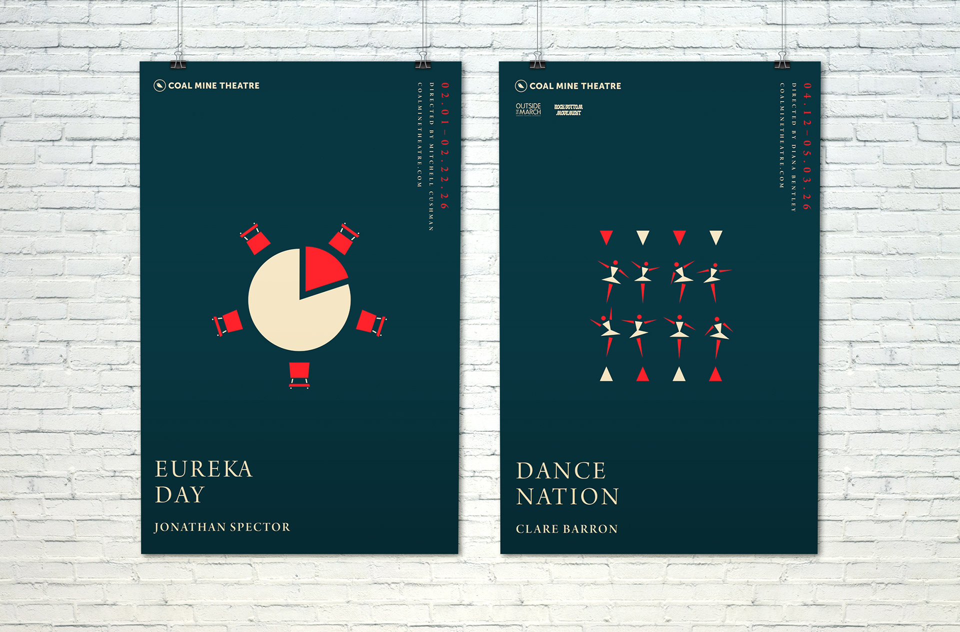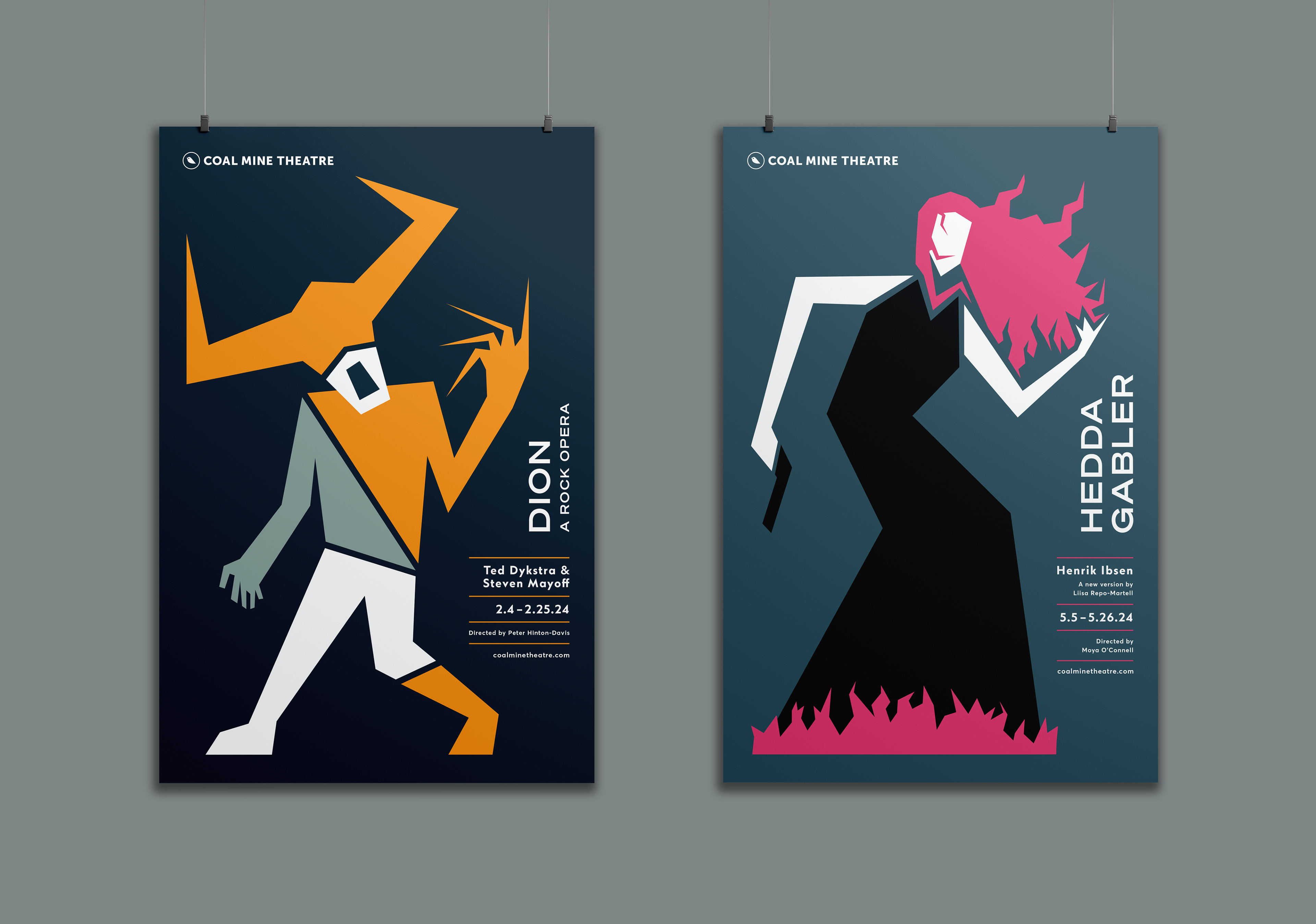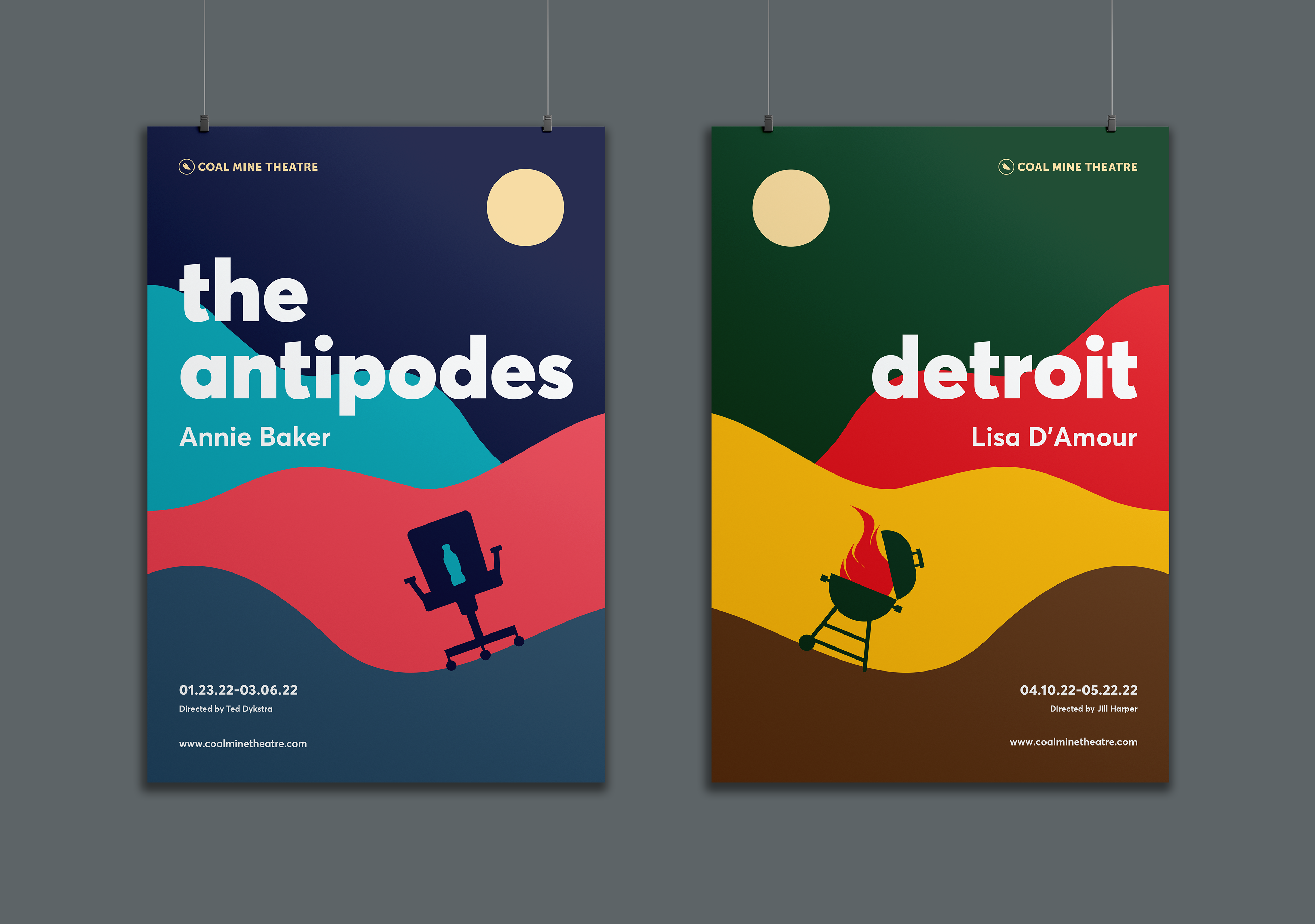 The Coal Mine is an independent theatre in Toronto’s East End. The logo concept is based on an allusion to caged canaries that miners would carry down into the mine tunnels with them. If dangerous gases such as carbon monoxide collected in the mine, the gasses would kill the canary before killing the miners, thus providing a warning to exit the tunnels immediately. Just like a new play the success of which is never certain. Each season's design strives towards a different feeling (dramatic, happy, intense). The illustrations are based on elements of the plays, but never spoiling the story.