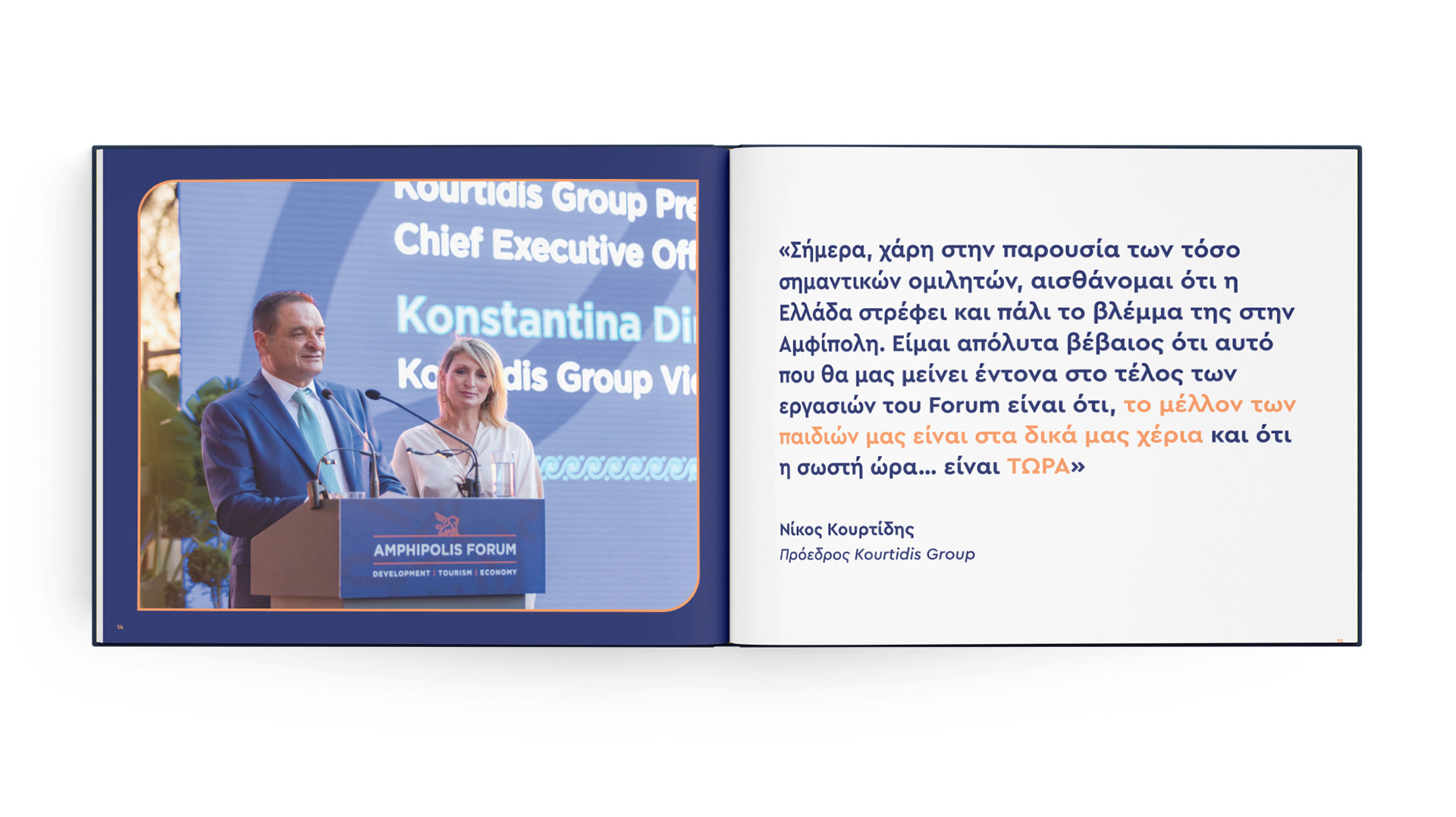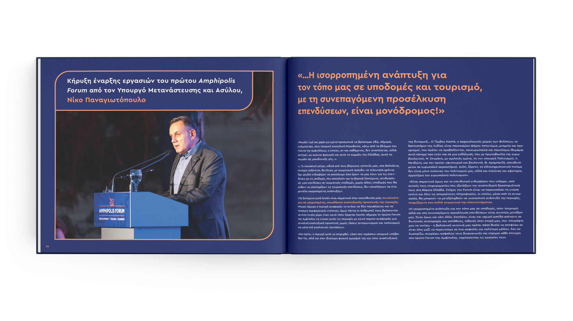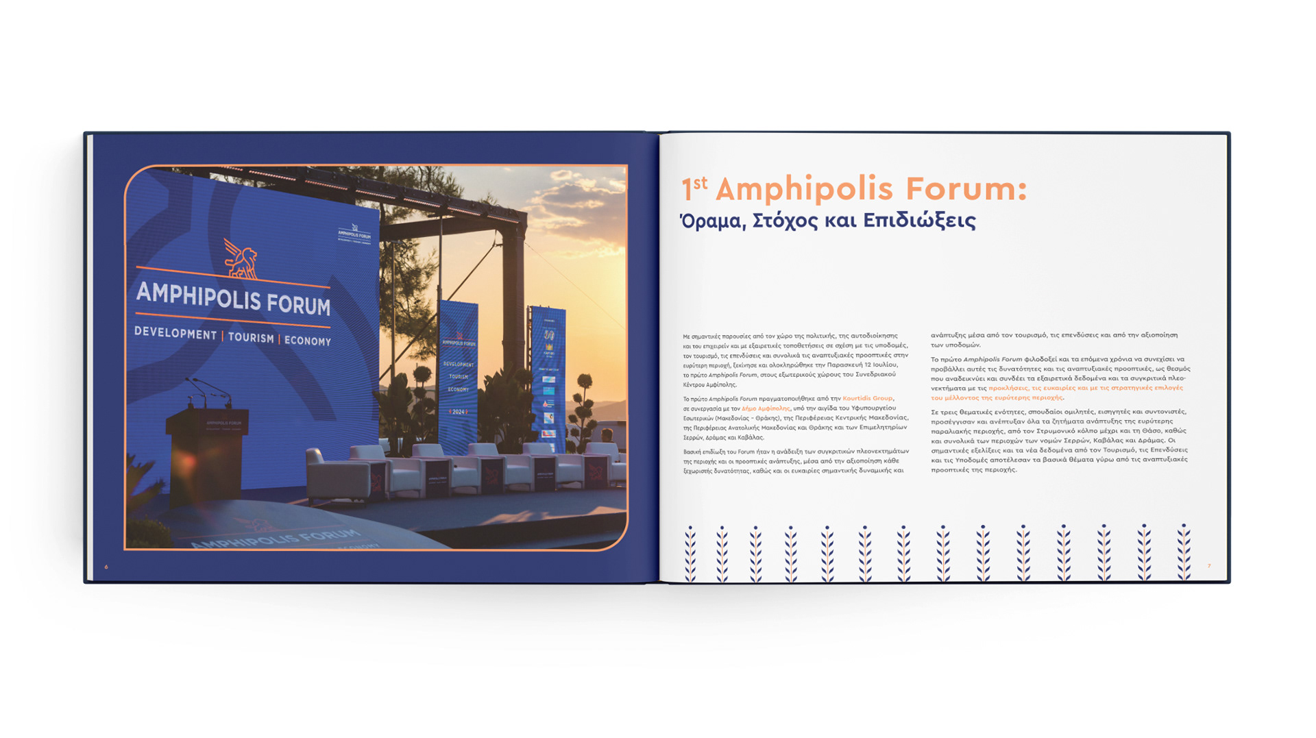 Logo design, brochure and illustrations for the Amphipolis Forum. The symbol was inspired by a lion's mane, a nod to the impressive statue of the Amphipolis Lion, a major landmark of the area.