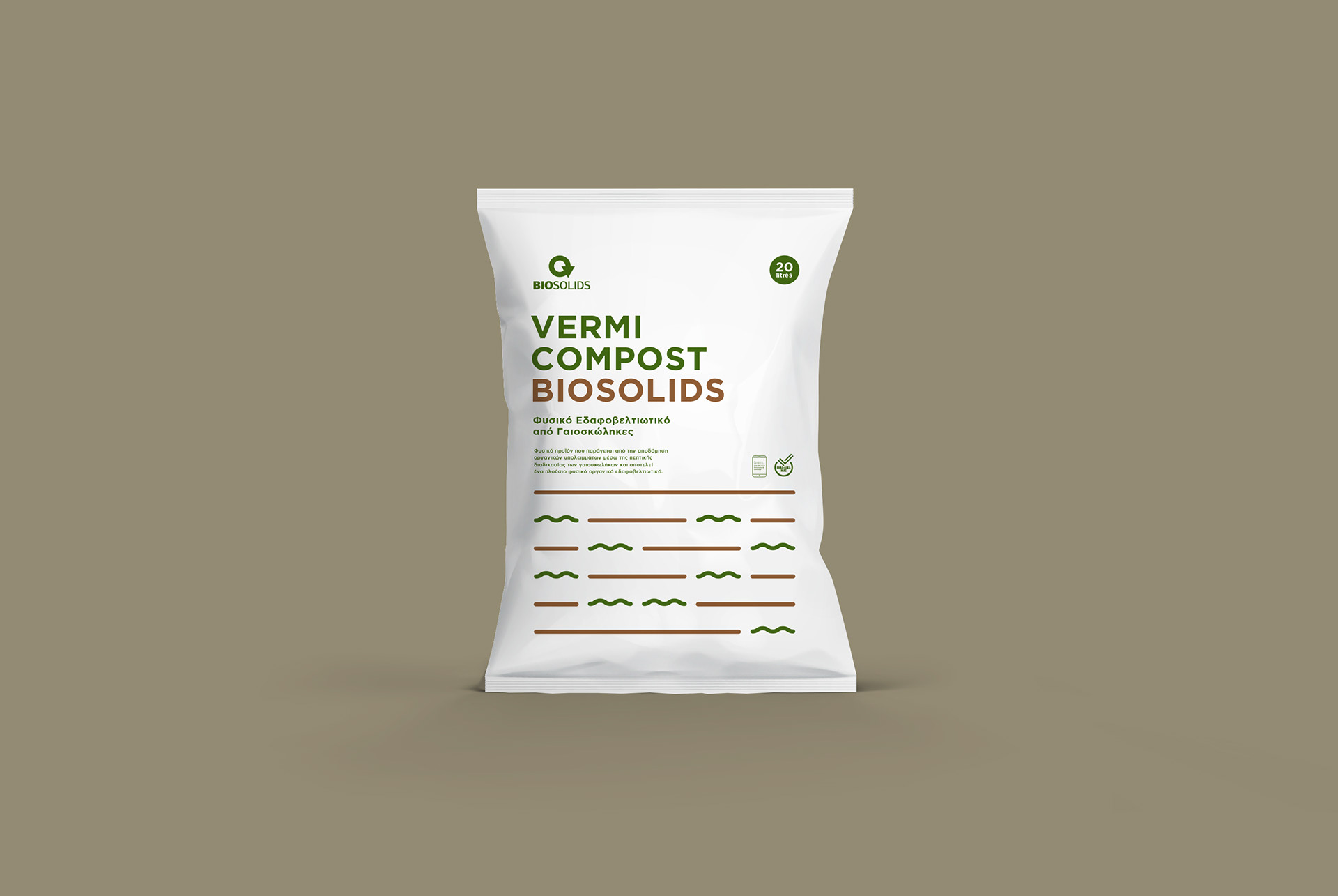 Product packaging for Biosolids, a company that provides a tangible example of the circular economy and sustainable development through the production and selling of innovative, organically grown products for a healthy and viable world. A CLEAN/CUT project.