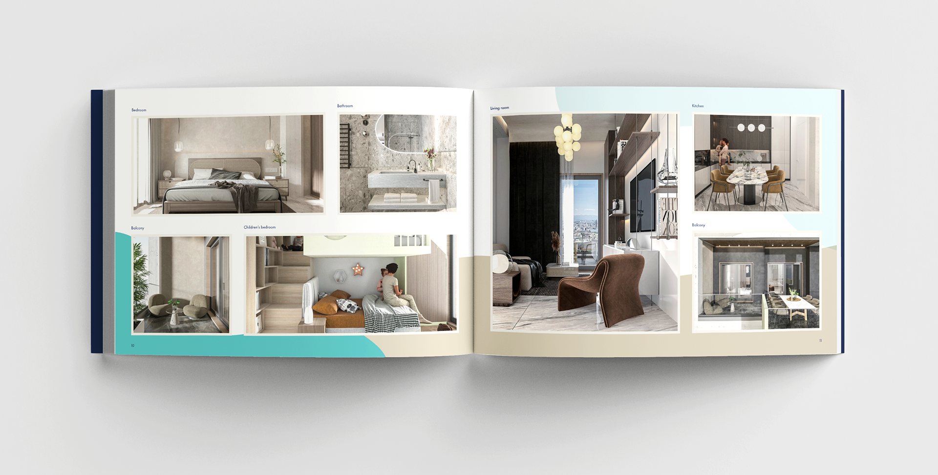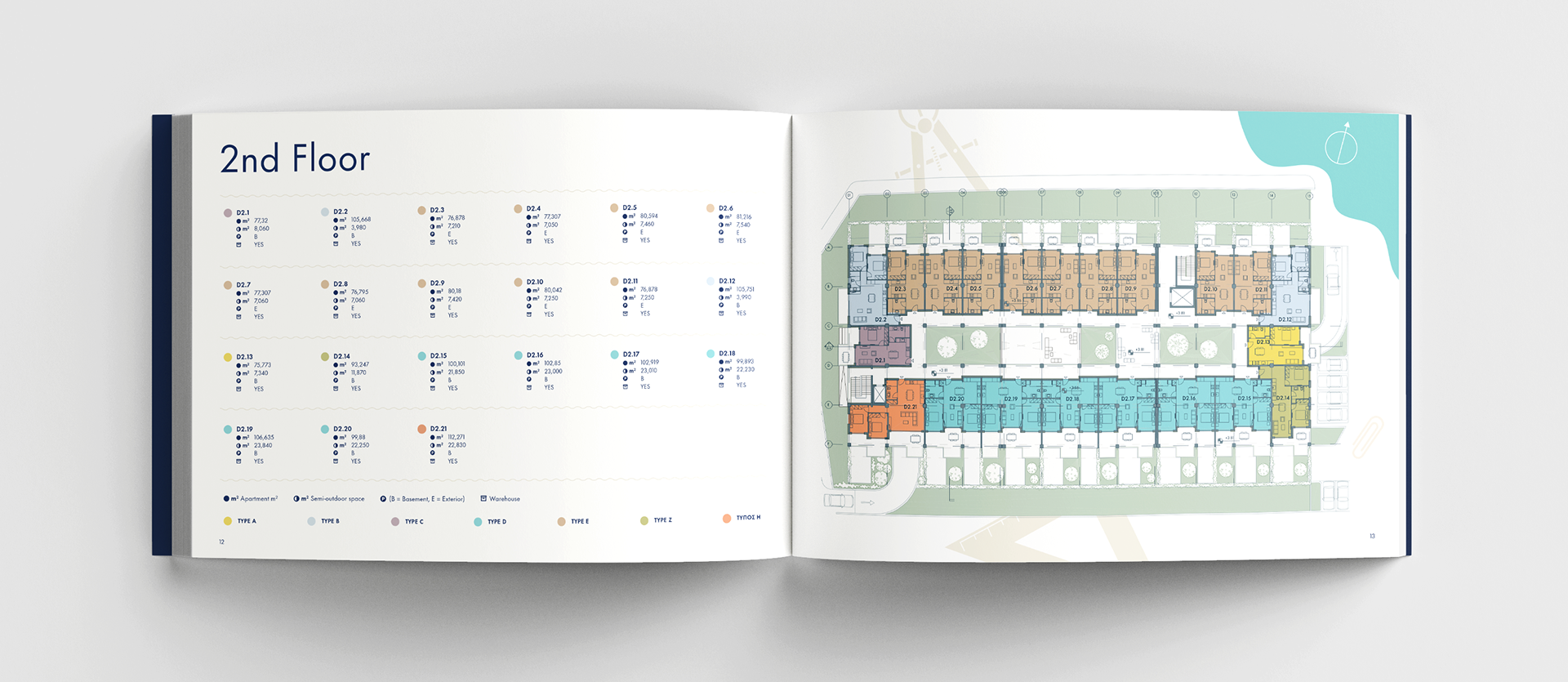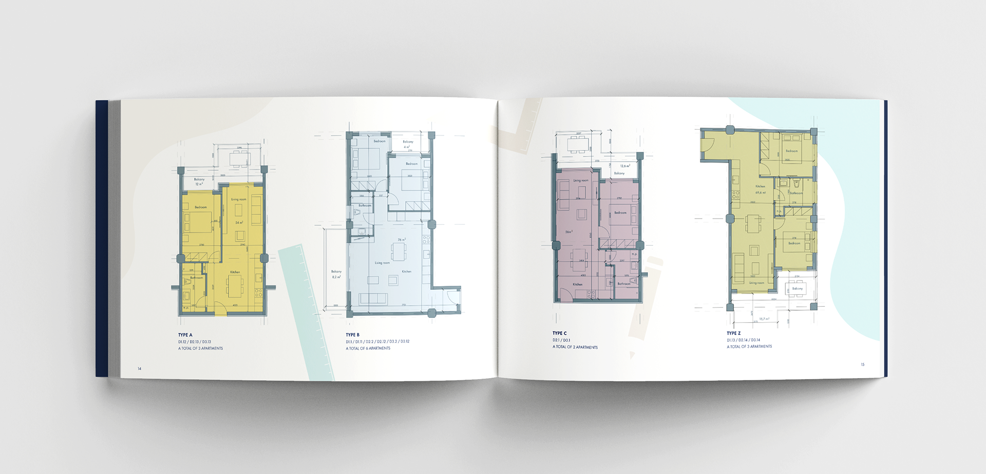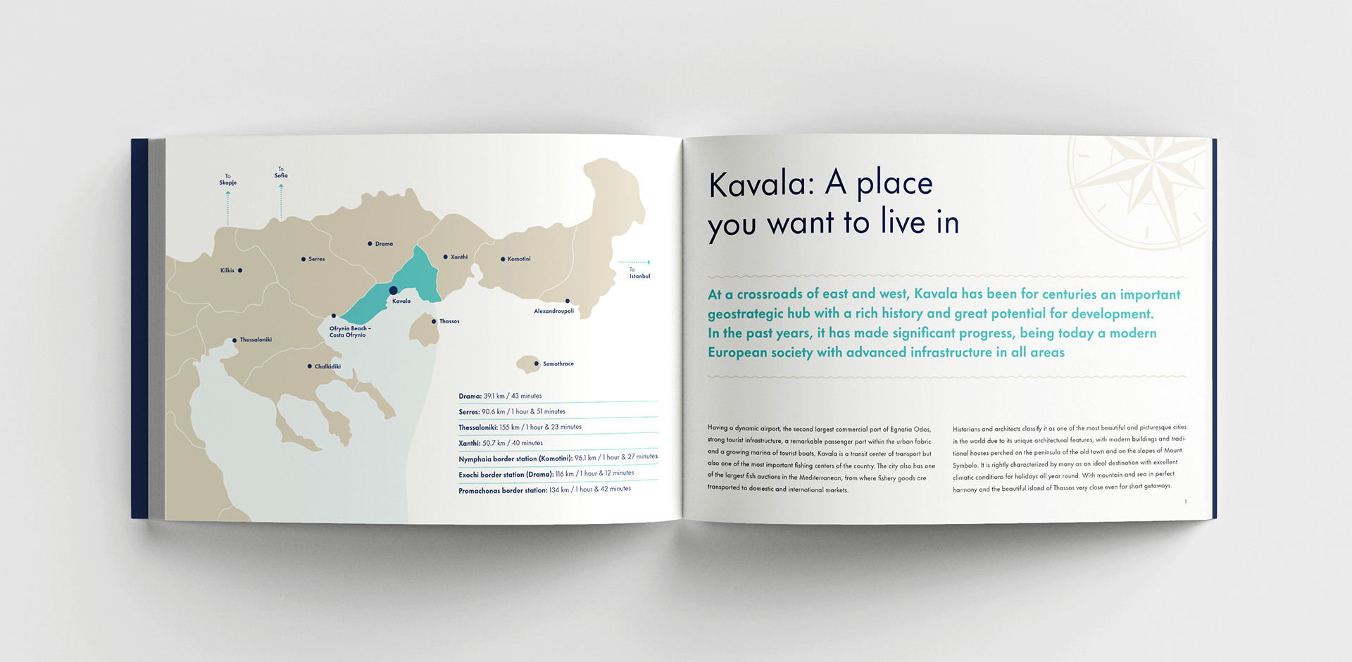 "The Dolphin" is the new ambitious project of Kourtidis Group in the city of Kavala. It is the first building designed and reconstructed based on sustainable architecture, offering innovations and unique benefits to its owners and the environment. The logo is based on the shape of the building and its proximity to the sea. The brochure combines the austere lines of the logo and building with the relaxed waves of the nearby sea of Kavala.